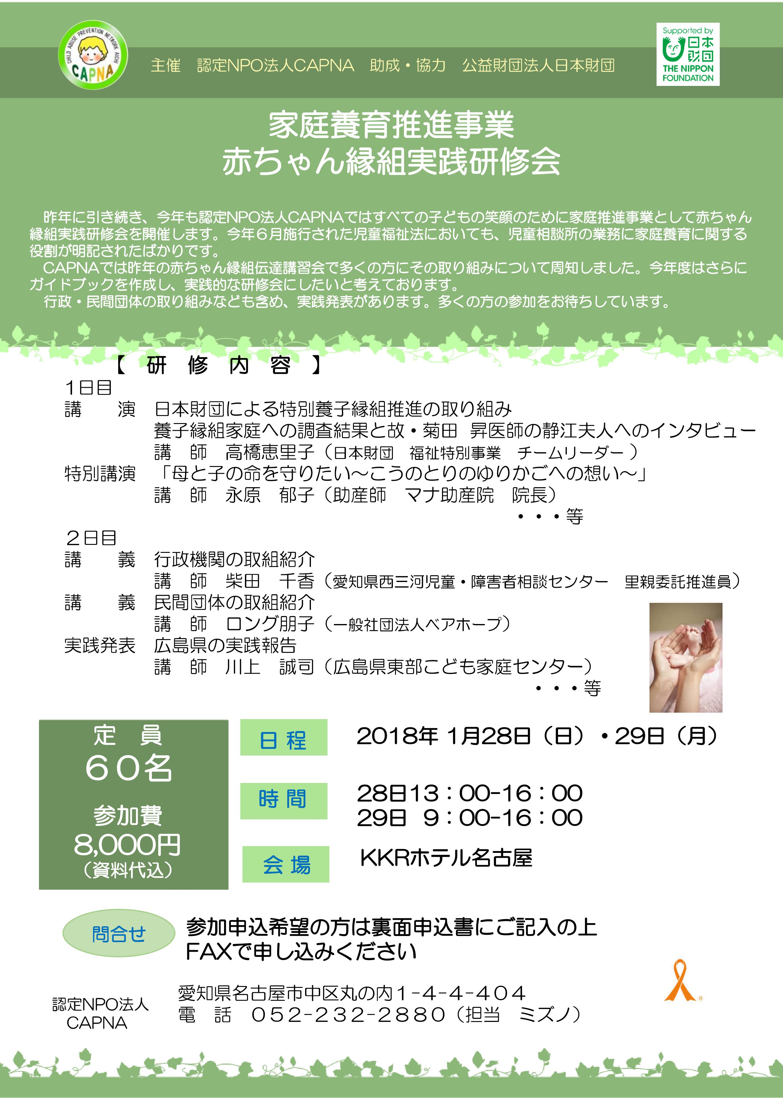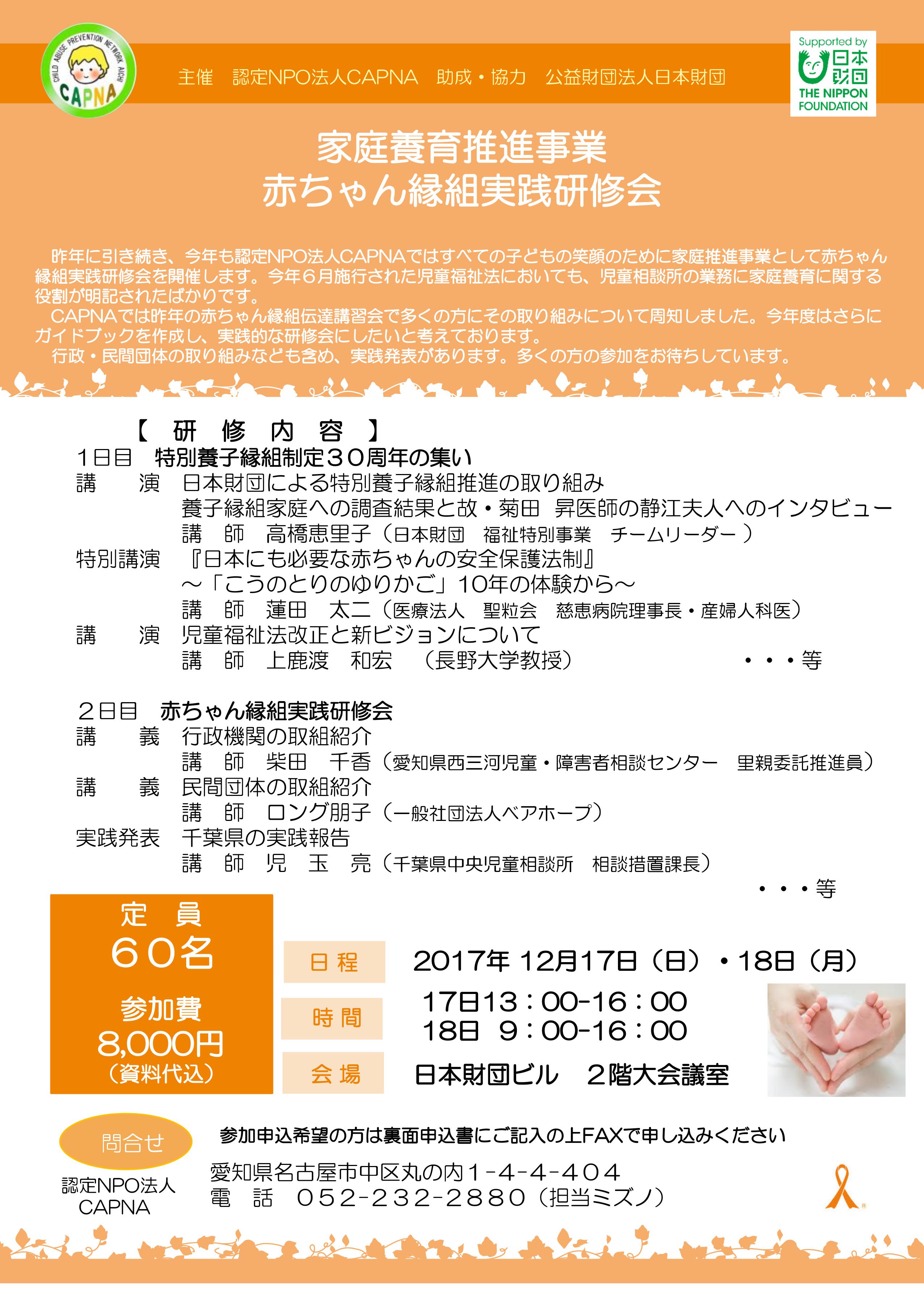 CAPNA主催 日本財団助成・協力 家庭養育推進事業 赤ちゃん縁組実践研修会(名古屋会場)