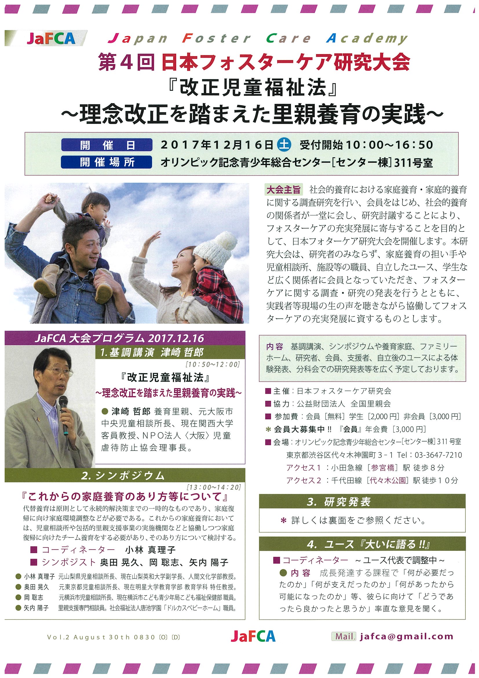 全国里親会が協力しているフォスターケア研究会から第4回研究大会のお知らせ